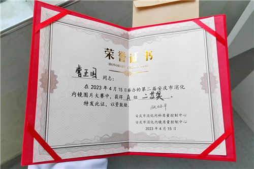近日,在第二屆安慶市消化內(nèi)鏡圖片大賽上,石化醫(yī)院消化內(nèi)科曹正國副主任醫(yī)師表現(xiàn)優(yōu)異,榮獲A組二等獎。