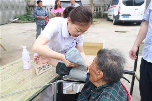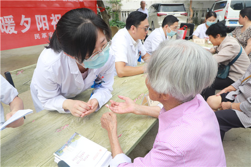 活動(dòng)現(xiàn)場(chǎng),醫(yī)務(wù)人員為老人們提供量血壓、測(cè)血糖、心肺聽診、前列腺癌篩查等服務(wù),認(rèn)真聽取老人們的訴求,耐心細(xì)致地答疑解惑,針對(duì)性地給予健康指導(dǎo)和用藥建議。
