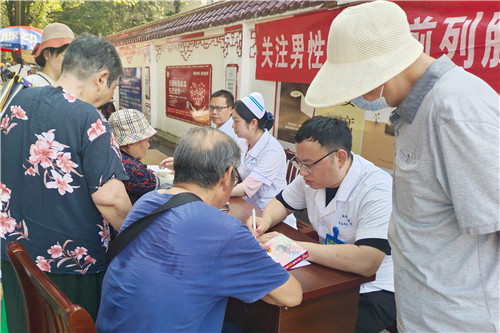 在檢驗(yàn)科的大力支持下,泌尿外科副主任余運(yùn)旵、副主任醫(yī)師吳慧君、護(hù)士長方誠誠帶領(lǐng)科室醫(yī)護(hù)專家,為社區(qū)群眾進(jìn)行前列腺腫瘤標(biāo)記物PSA(前列腺特異性抗原)篩查,詳細(xì)地講解前列腺炎、前列腺增生及前列腺癌等疾病的相關(guān)知識,耐心答疑解惑,并提出治療建議。