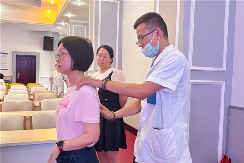醫(yī)護(hù)專家為老師們量血壓、測(cè)血糖并耐心問診,針對(duì)健康問題給予專業(yè)治療建議和指導(dǎo)??祻?fù)理療專家逐一為老師進(jìn)行體態(tài)評(píng)估,對(duì)常見的頸椎、腰椎不適問題,提供免費(fèi)推拿治療,有效緩解了老師們的身體酸痛,贏得學(xué)校的一致好評(píng)。