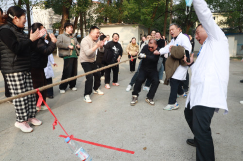 賽場上,各隊選手精神抖擻,雙手緊握長繩,身體后傾,使出渾身解數(shù)奮力拼搏。賽場邊,觀眾們熱情高漲,吶喊助威聲此起彼伏。經(jīng)過激烈比拼,最終門診分會1隊、門診分會2隊、臨一分會1隊分獲冠軍、亞軍、季軍。